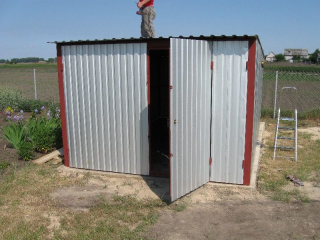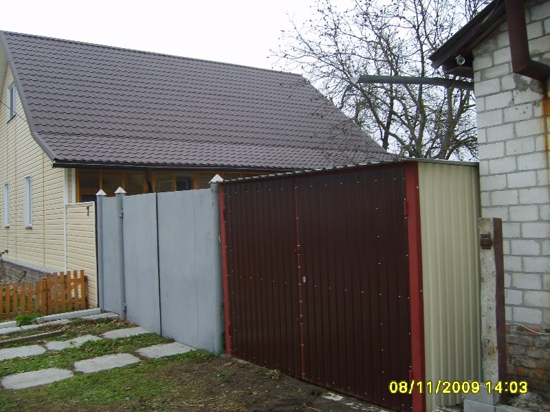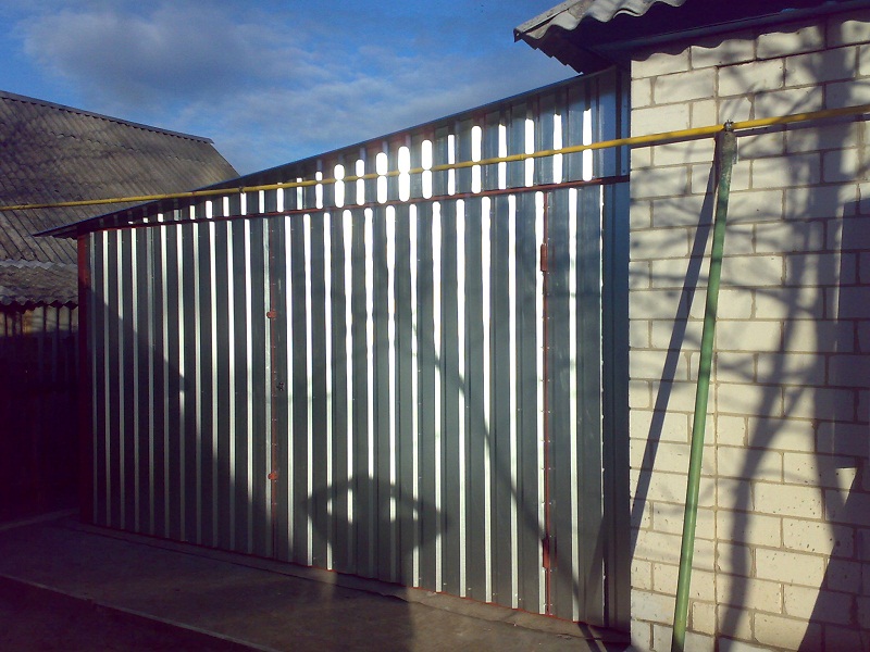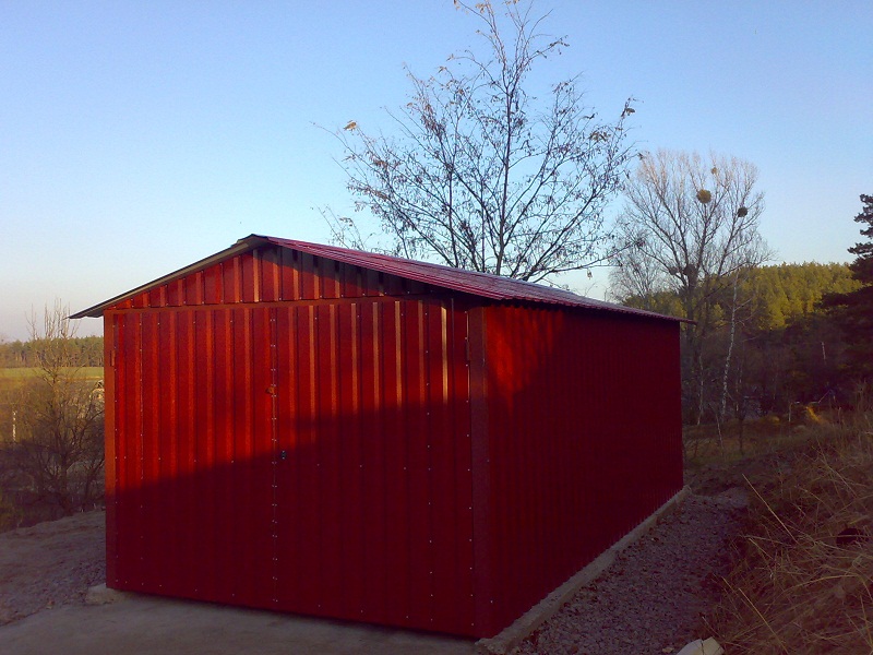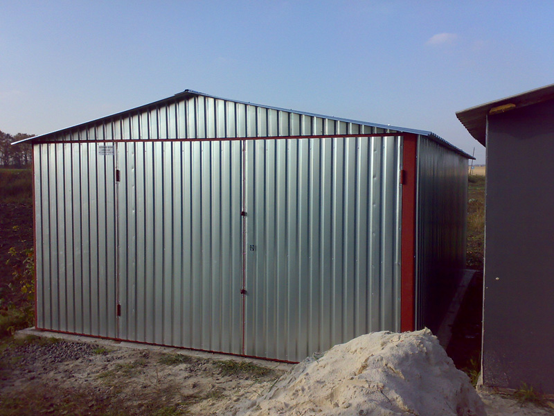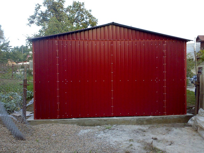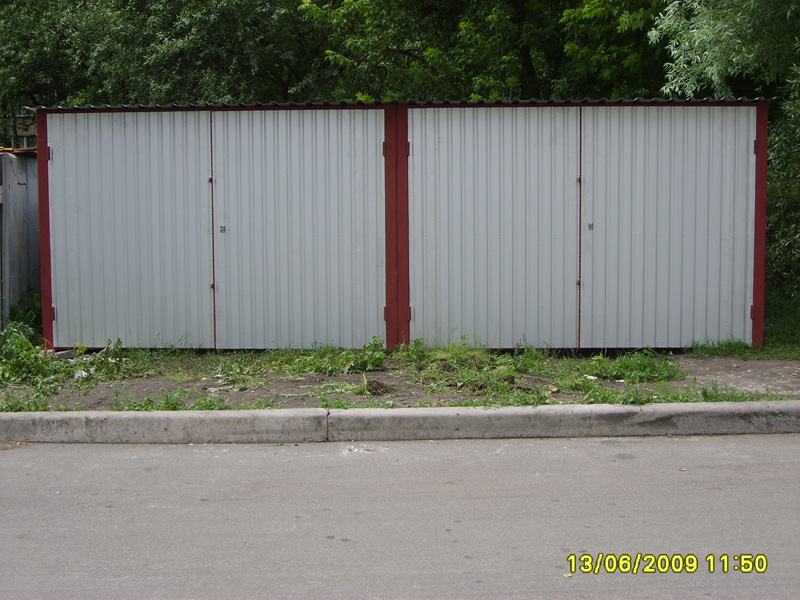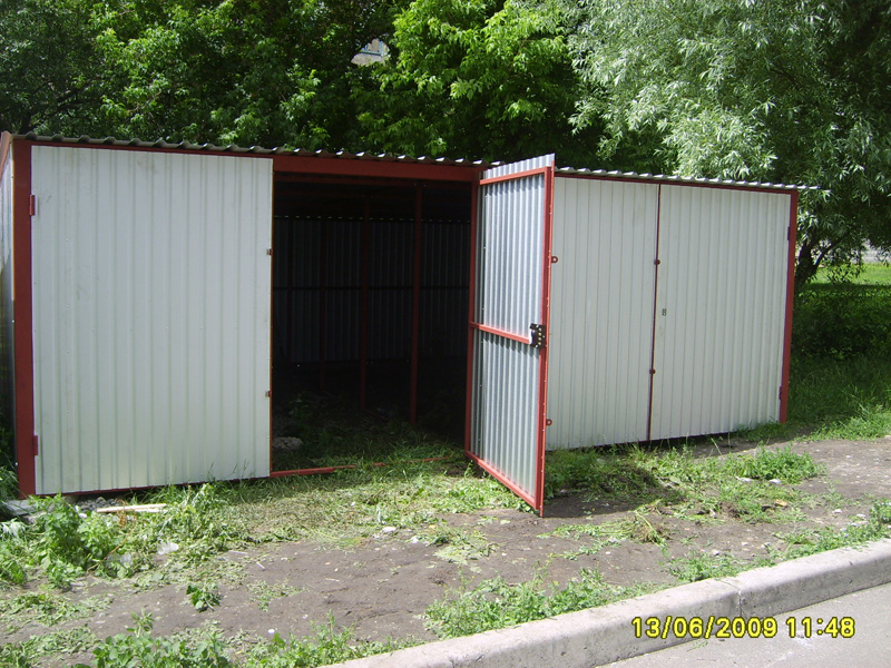 Предлагаем Вашему вниманию металлические гаражи. Каркас гаража изготовлен из квадратных и прямоугольных труб 40×20 и 30×30, рама ворот изготовлена из швеллера 100×50×3, что придает конструкции гаража дополнительную жесткость и исключает перекос створок ворот в будущем. Воротные створки крепятся к раме с помощью воротных петель 22×120 с шариком. Для крыши используются квадратные трубы 40×40.