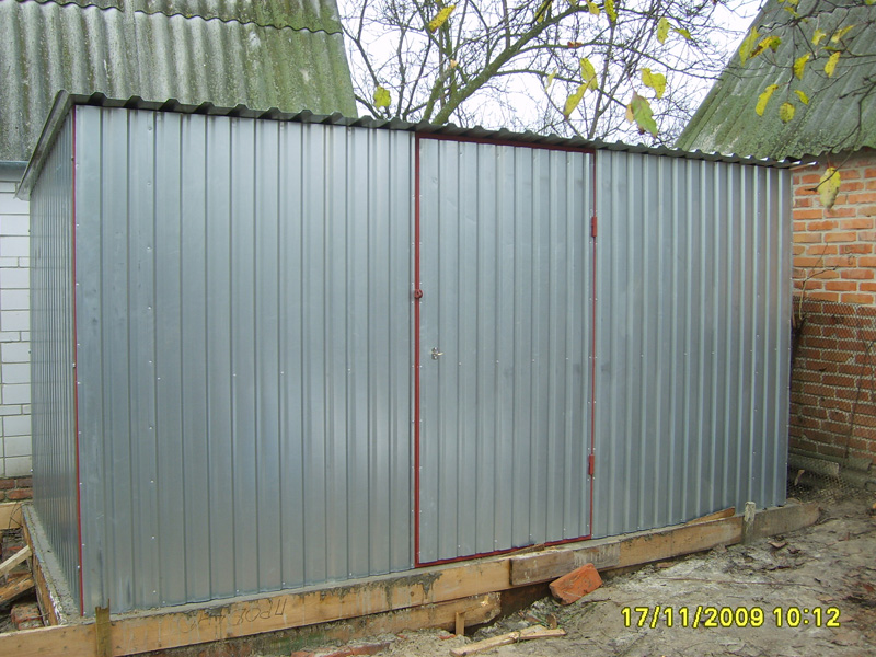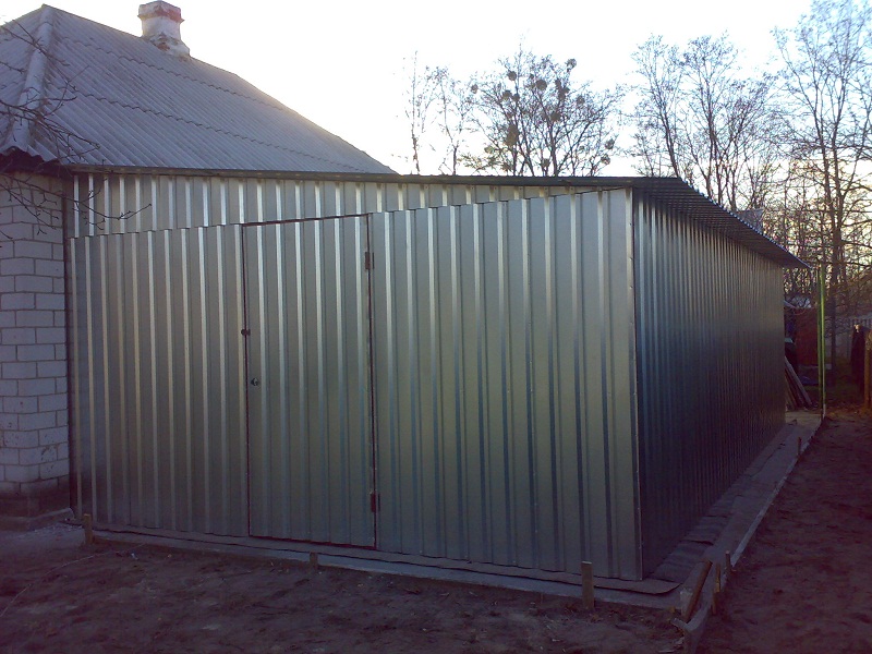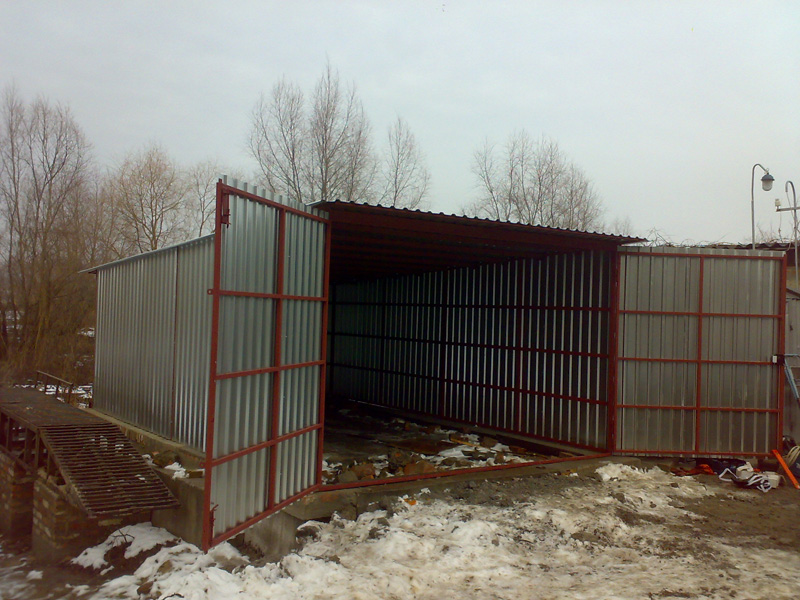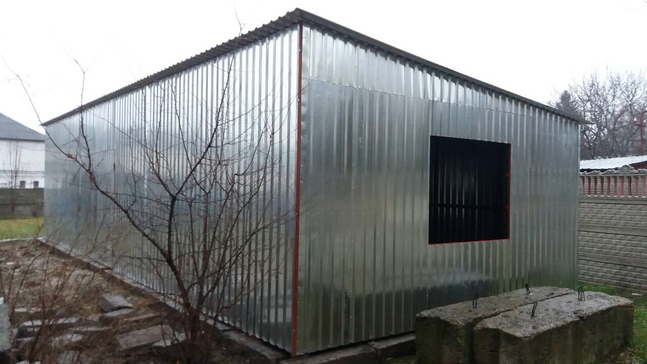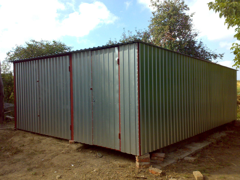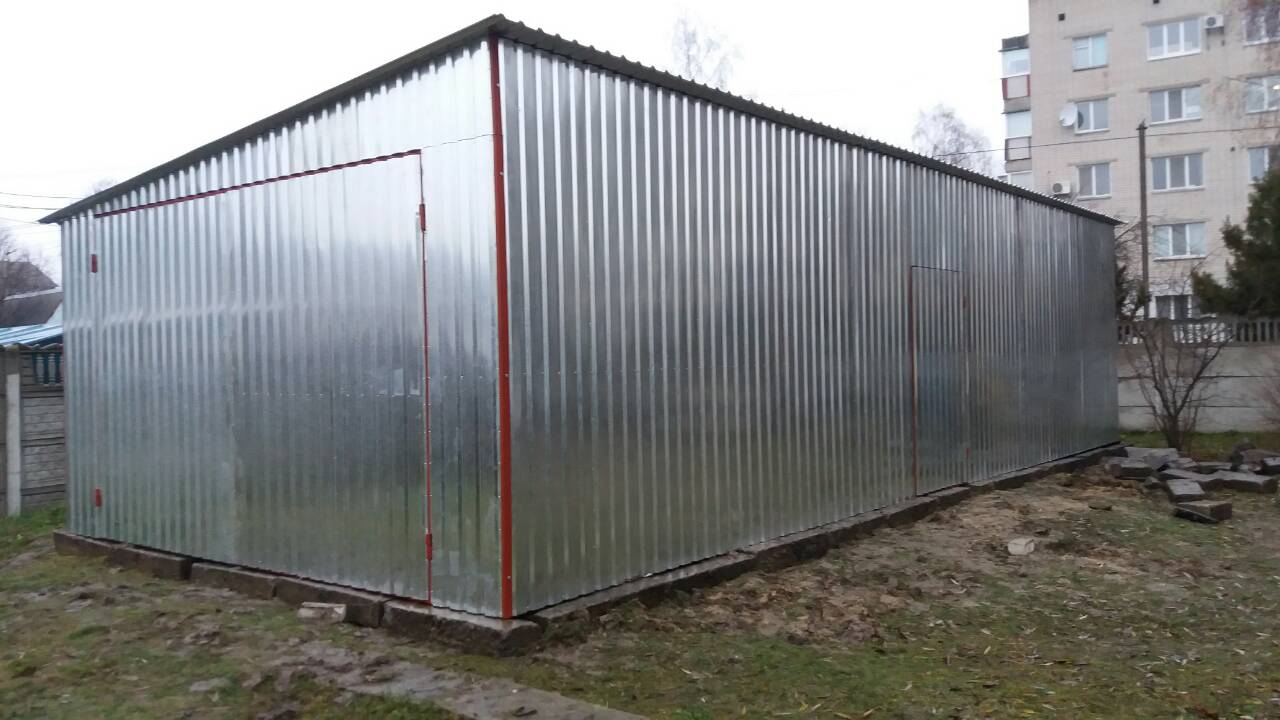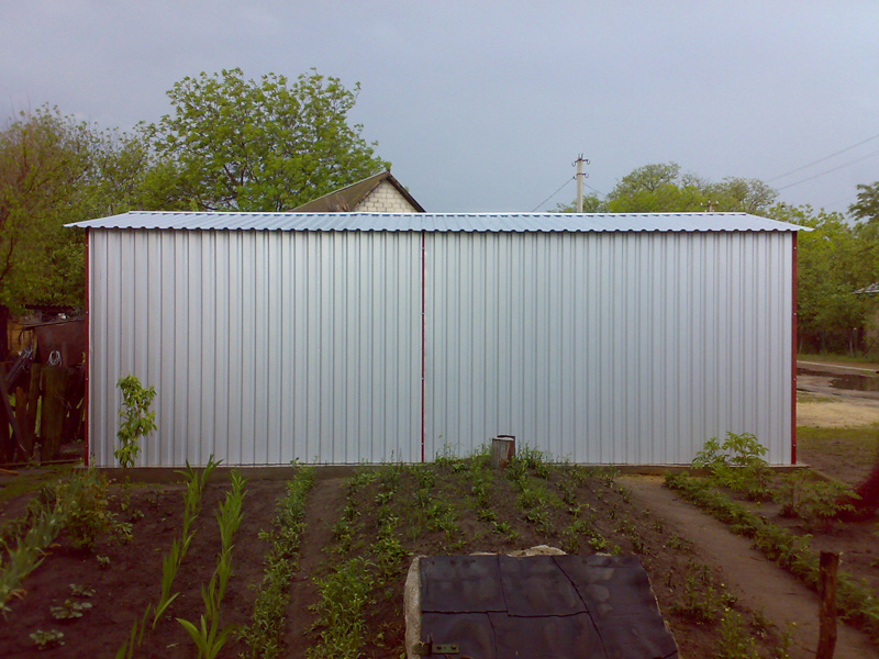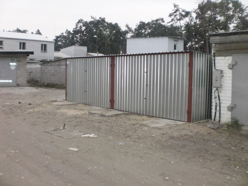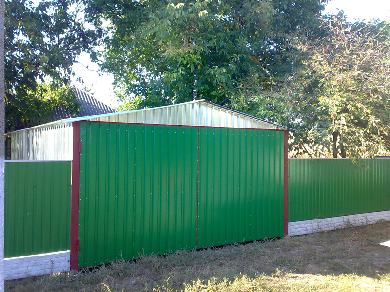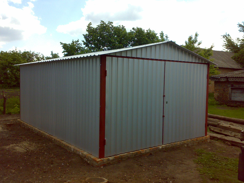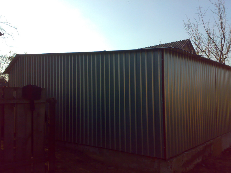 Пропонуємо Вашій увазі металеві гаражі. Каркас гаража виготовлений із квадратних і прямокутних труб 40 × 20 і 30 × 30, рама воріт виготовлена із швелера 100 × 50 × 3, що надає конструкції гаража додаткову жорсткість і виключає перекіс стулок воріт у майбутньому. Воротні стулки кріпляться до рами за допомогою воротних петель 22 × 120 з кулькою. Для даху використовуються квадратні труби 40 × 40.