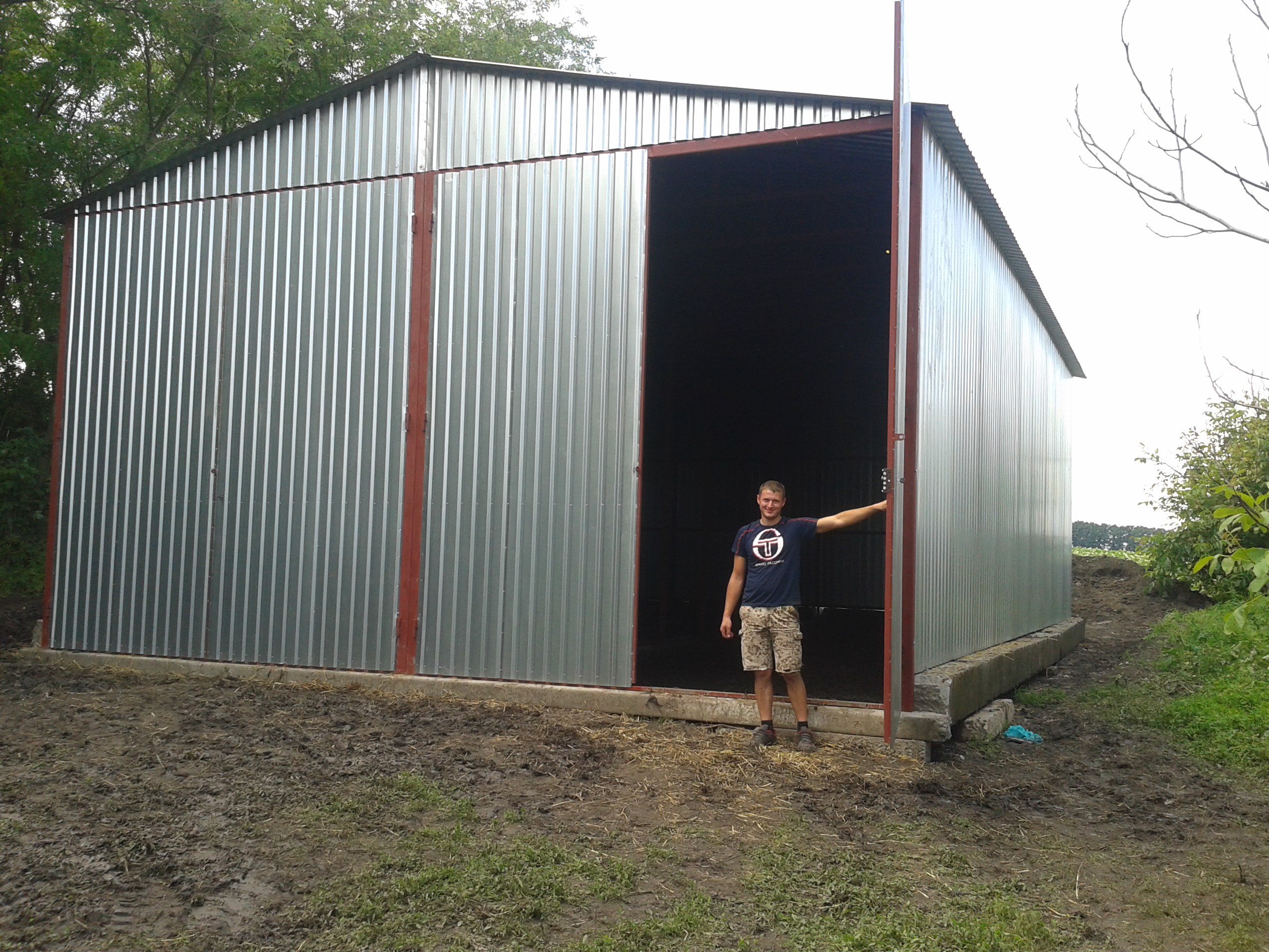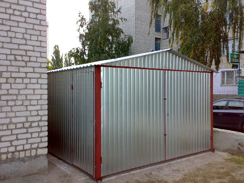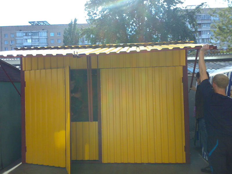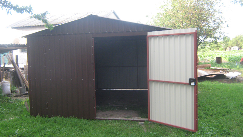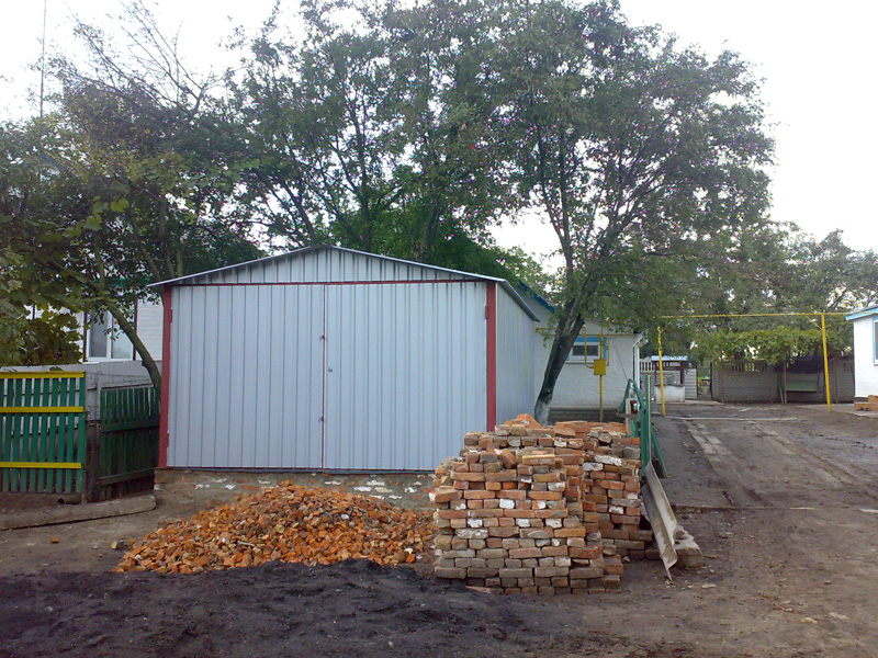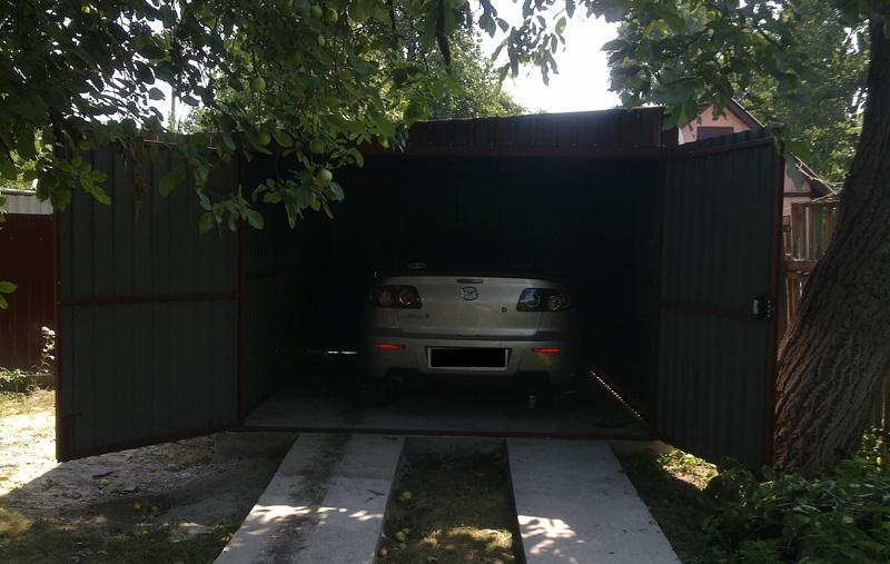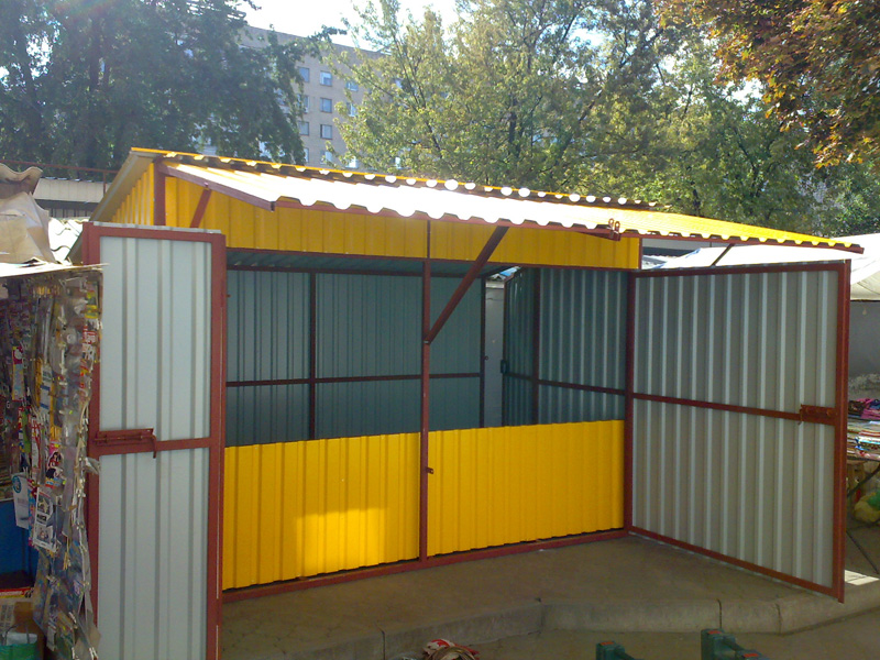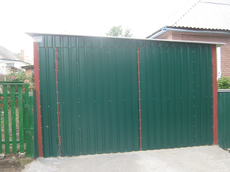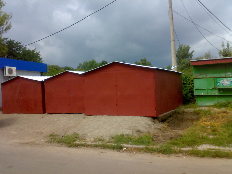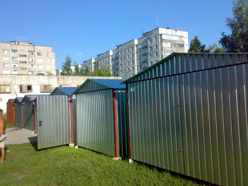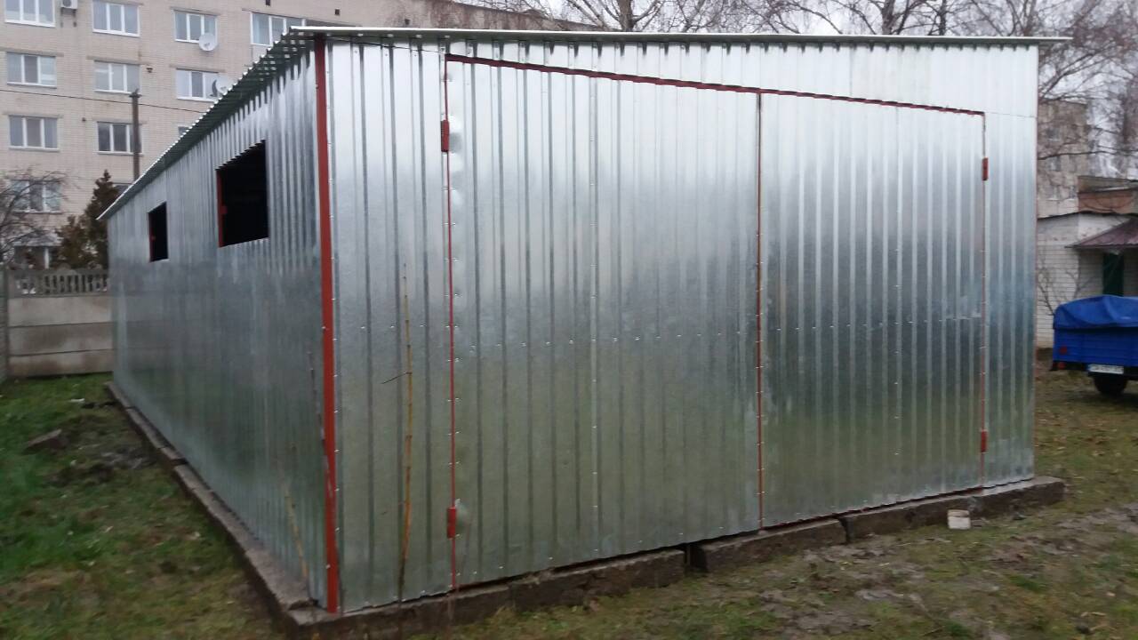 Пропонуємо Вашій увазі металеві гаражі. Каркас гаража виготовлений із квадратних і прямокутних труб 40 × 20 і 30 × 30, рама воріт виготовлена із швелера 100 × 50 × 3, що надає конструкції гаража додаткову жорсткість і виключає перекіс стулок воріт у майбутньому. Воротні стулки кріпляться до рами за допомогою воротних петель 22 × 120 з кулькою. Для даху використовуються квадратні труби 40 × 40.