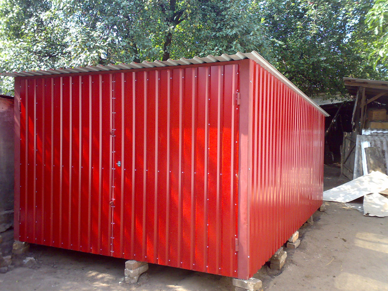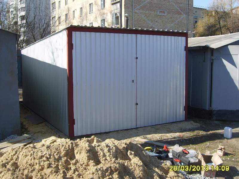 При монтажі гаража використовуються тільки оцинковані болти М10 підвищеної міцності 8.8, гайки, саморізи і шайби, які не іржавіють і не створюють вогнищ корозії металу. Каркас гаража обшитий якісним профнастилом ПС-20 (хвиля 20 мм), товщина 0,5 мм, на дах використовується покрівельний профнастил ПК-20 з паровою канавкою, товщина 0,5 мм. У ворота вмонтований замок Ельбор 1.05.51.5.1.1 з чотирма сталевими циліндричними ригелями ? 14 мм, виліт 40 мм, а також передбачено 2 пари вушок для 2 навісних замків.